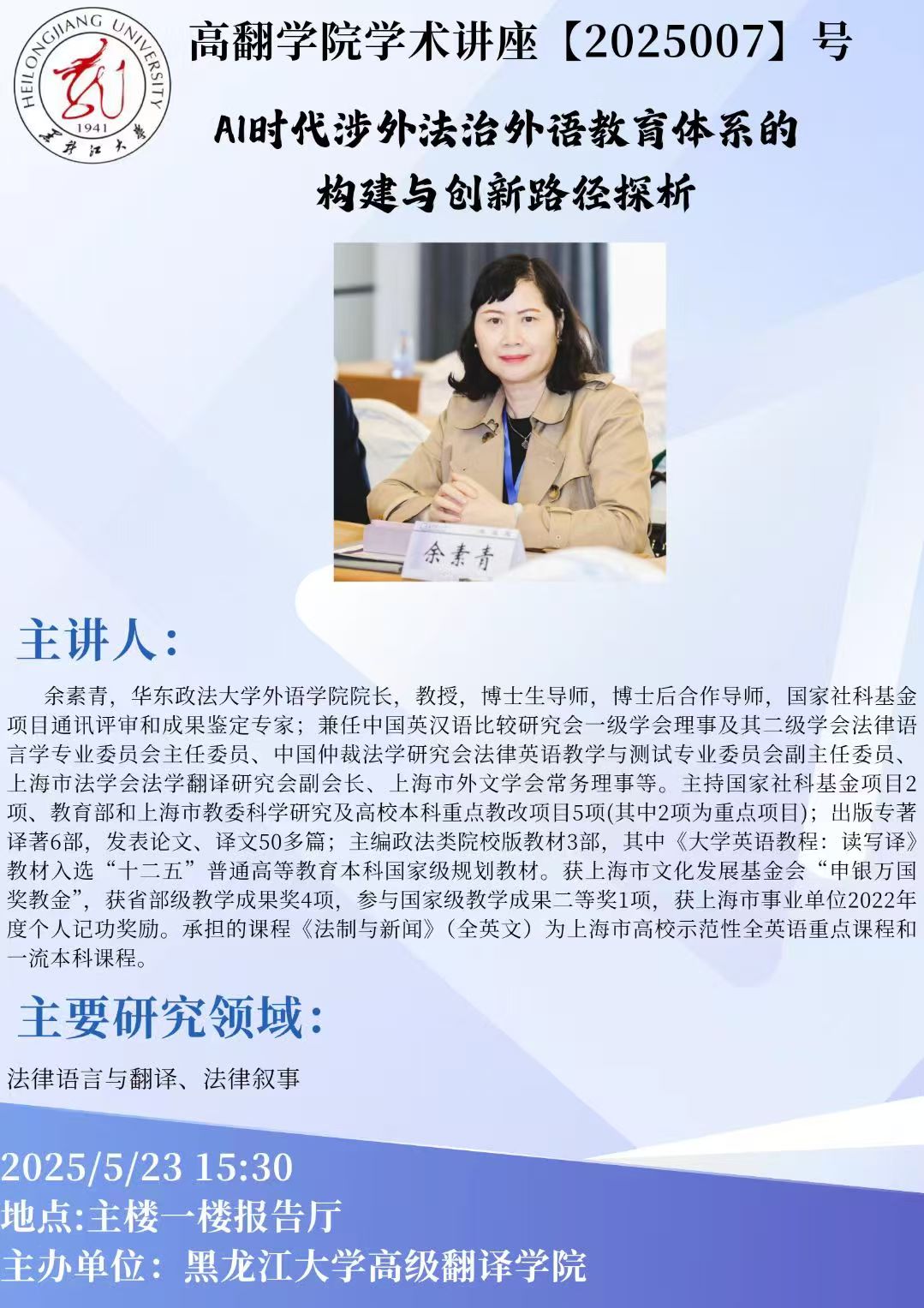 MKsports学术讲座【2025007】号-----AI时代涉外法治外语教育体系的构建与创新路径探析