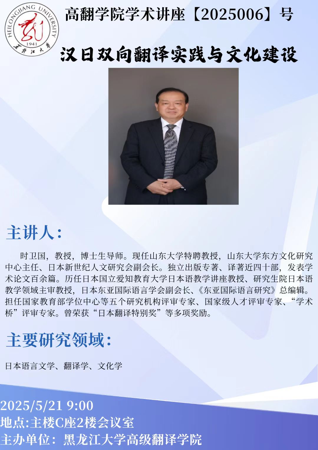 MKsports学术讲座【2025006】号-----汉日双向翻译实践与文化建设