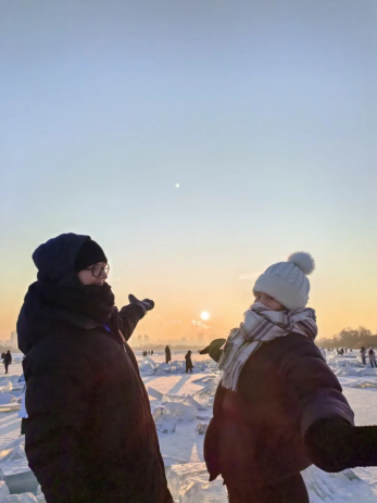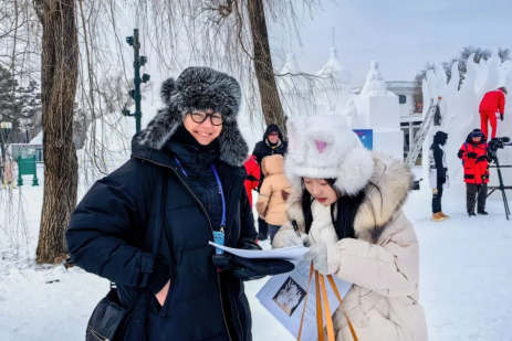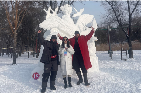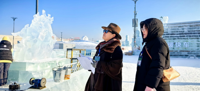 我以国际冰雪雕艺术协会主席、芬兰评委海科宁女士陪同口译员的身份,参与此次国际冰雪雕大赛。从外事接待的庄重礼仪中,我窥见了国际交流的严谨与优雅;与哈尔滨冰雪文化博物馆馆长的会面,则如一场穿越时空的对话,让我触摸到冰雪文化的灵魂与温度;而与哈工大罗鹏教授的学术交流更似一场思想的盛宴,点燃了我对冰雪科学与艺术的无限遐想。更有幸的是,我还与海科宁女士一同参与了黑龙江省电视台宣传短片的拍摄,用镜头记录下这片冰雪天地的壮美与灵动。这段旅程,不仅是一场视觉与心灵的盛宴,更是一次文化与友谊的深度交融。每一刻都如冰雪般纯净而珍贵,成为我生命中熠熠生辉的篇章。