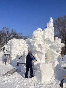 作为俄语专业员工,此次志愿服务让我对语言和专业有了全新认知。为俄罗斯参赛队员翻译时,我感受到课堂知识与真实环境的差异,也明白了语言的核心是传递温度。冰雕师们的“冰雕精神”让我敬佩不已。他们在零下二十度的寒风中跪在冰面雕刻,面对开裂作品,第一时间讨论如何让裂缝成为设计的一部分。这种在极限环境中保持创造力与团队协作的精神,将成为我终身受益的财富。这场冰雪盛会让我明白,语言是连接世界的工具,而真诚与毅力才是跨越国界的共通语言。