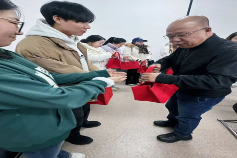 活动现场气氛温馨,吴继锋详细询问了同学们的备考院校、复习进度等,鼓励同学们在最后冲刺阶段保持良好心态,坚信自己能力,以饱满的热情和冷静的头脑迎接考验,给自己交出一份满意的答卷。随后,吴继峰将满载着对同学们关怀与祝福的礼物亲手送给备考中的高翻学子。
