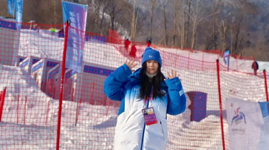 初到亚布力,我主动报名去艰苦的山上赛道—坡面障碍进行志愿服务,我见过沿途的大雪漫山,也听过大家的欢声笑语,认识很多外国友人,在交流中积累了许多口语表达技巧,在天气恶劣的情况下,每一个人依然坚持在寒风中工作六七个小时,不惧艰难万险,始终坚守岗位,促使了每一场赛事转播都顺利开展与完成。