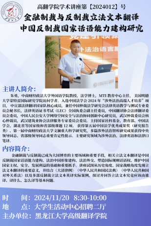 主讲题目:金融制裁与反制裁立法文本翻译中国反制裁国家话语能力建构研究