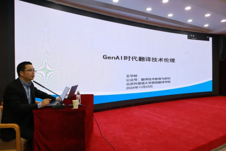 在“GenAI 时代翻译技术伦理 ”讲座中,王华树指出,人工智能和机器翻译技术的迅猛发展正在重塑翻译行业的生产模式,为翻译工作者带来了前所未有的机遇与挑战。他强调,随着大模型技术的不断成熟,翻译行业的生产关系将逐步重构,人工智能与人类协作将成为行业主流。未来的翻译从业者不再仅是单纯的执行者,而将更多承担起创造与管理的职责,逐步转向高效任务管理与信息整合。针对大模型技术,王华树指出,清晰且具体的任务描述是确保其输出质量的关键,通过精准的任务背景设定、目标明确的输出格式等因素的整合,翻译人员能够更为高效地完成复杂任务,在激烈的技术变革中牢牢把握发展主动权。